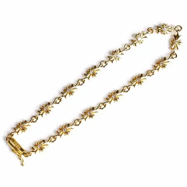 It refers to the bracelet’s delicate, engraved CH Plus cross links — a signature Chrome Hearts design symbolizing strength and faith.