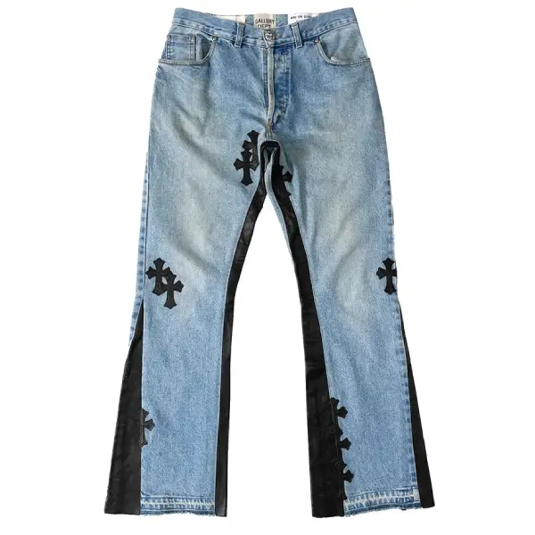 Designed for versatility, these jeans can be styled with oversized graphic tees, cropped jackets, hoodies, or tailored outerwear. The flared cut balances boldness with wearability, making them suitable for both everyday streetwear and elevated fashion looks. The collaboration embodies the shared philosophy of Chrome Hearts and Gallery Dept—celebrating individuality, craftsmanship, and creative rebellion.