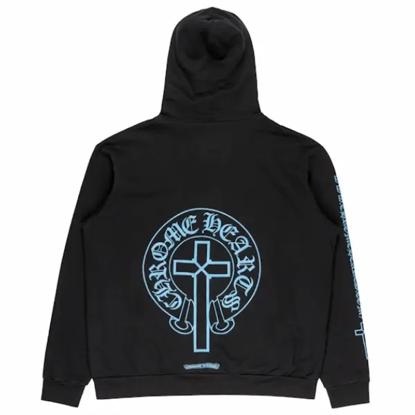 Details: “Certified Chrome” back graphic, Chrome Hearts cross patches, handcrafted detailing, kangaroo pocket, and adjustable drawstring hood