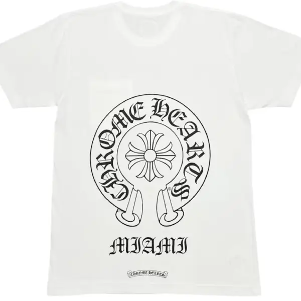 The Chrome Hearts Miami Exclusive T-Shirt in White captures the vibrant energy of South Beach through the unmistakable lens of Chrome Hearts’ luxury streetwear craftsmanship. Designed exclusively for the Chrome Hearts Miami flagship, this limited-edition tee celebrates the brand’s signature gothic style with a sun-soaked, coastal twist.