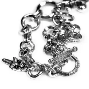 Design: Expertly handcrafted from sterling silver, this bracelet features interlocking multi-ring links showcasing Chrome Hearts’ signature gothic detailing