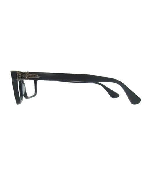 Signature Chrome Hearts craftsmanship with detailed silver cross motifs, engraved temples, and bold black finish