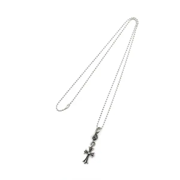 The pendant is suspended from a classic ball chain, composed of finely polished, evenly spaced silver beads that ensure a smooth, comfortable drape. The chain’s durability and lightweight feel make it ideal for daily wear, while its reflective surface adds a subtle shine that enhances the pendant’s intricate details. The ball chain also allows the Tiny Cross to move freely, creating a dynamic visual effect with every movement.