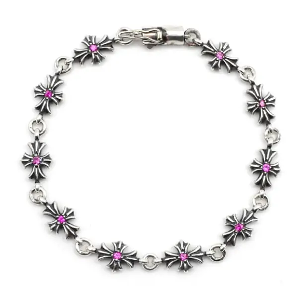 Chrome Hearts Tiny E Silver Pink Diamonds Cross Bracelet
