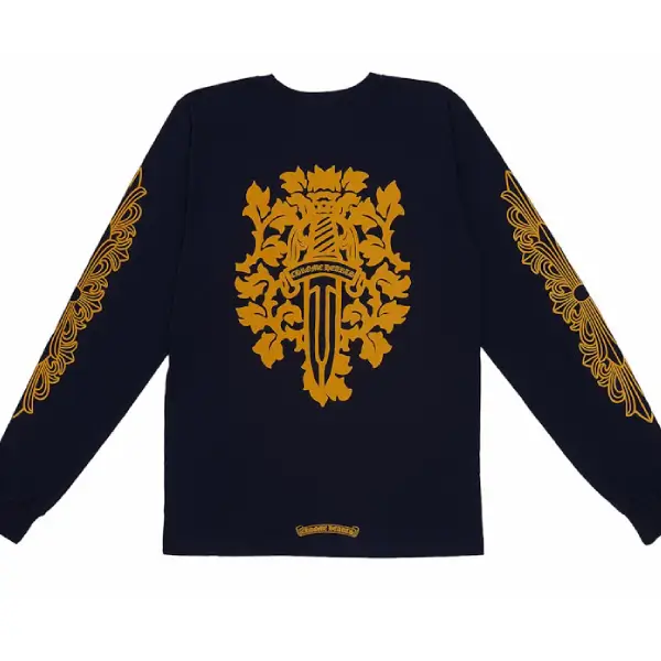 Design: Features the iconic Chrome Hearts Vine Dagger graphic across the back, with gothic logo detailing on the front. Finished with ribbed cuffs and hem