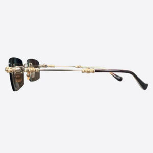 Exquisitely handcrafted from fine metals in a dual-toned palette of gold and silver, the frame gleams with Chrome Heartsā signature silver accents. Every curve, hinge, and detail speaks of artisan mastery a blend of modern technique and timeless heritage. The fusion of metallic hues creates a striking harmony that reflects both strength and refinement.