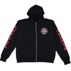 Chrome Hearts Made In Hollywood Plus Cross Zip Up Hoodie Black/Red